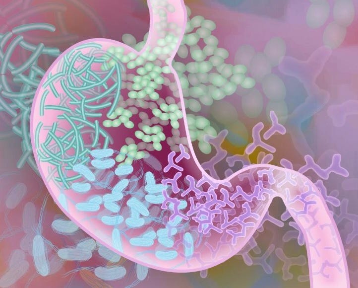 The gut microbiome is a dynamic community of microorganisms living in the lower intestine. There are thousands of bacteria in the colon. Everyone’s microbiome is different according to factors that may be genetic or environmental. There’s a party happening in the stomach with acid, enzymes and these tiny creatures who determine our ability to absorb nutrients from food.